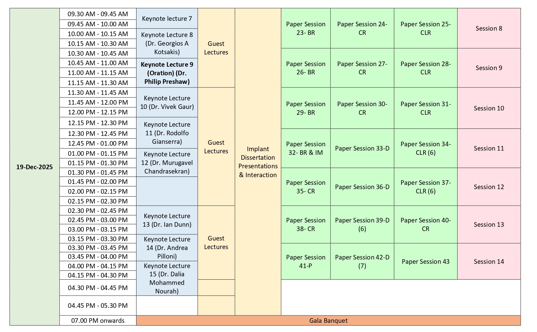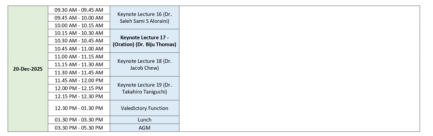 Nalanda & Samrasta Hall Schedule